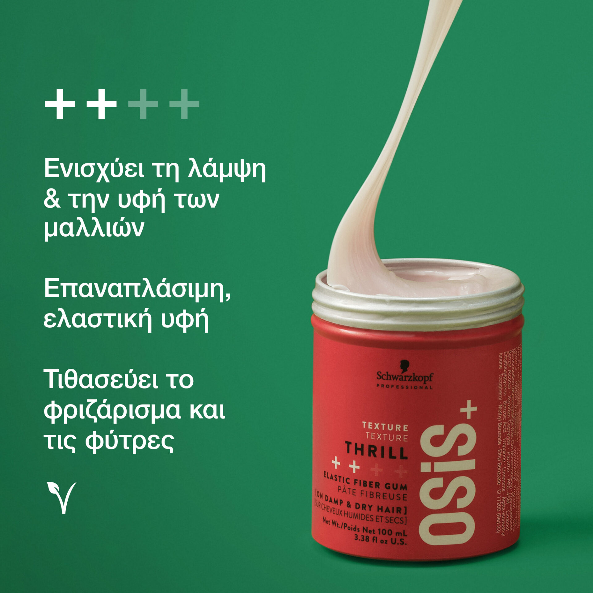Ινώδης κρέμα της σειράς OSIS+ της Schwarzkopf για ελαστικό έλεγχο style. Κόλλα με μεγάλες ίνες σας δίνει την ελευθερία ευέλικτων επιλογών υφής.